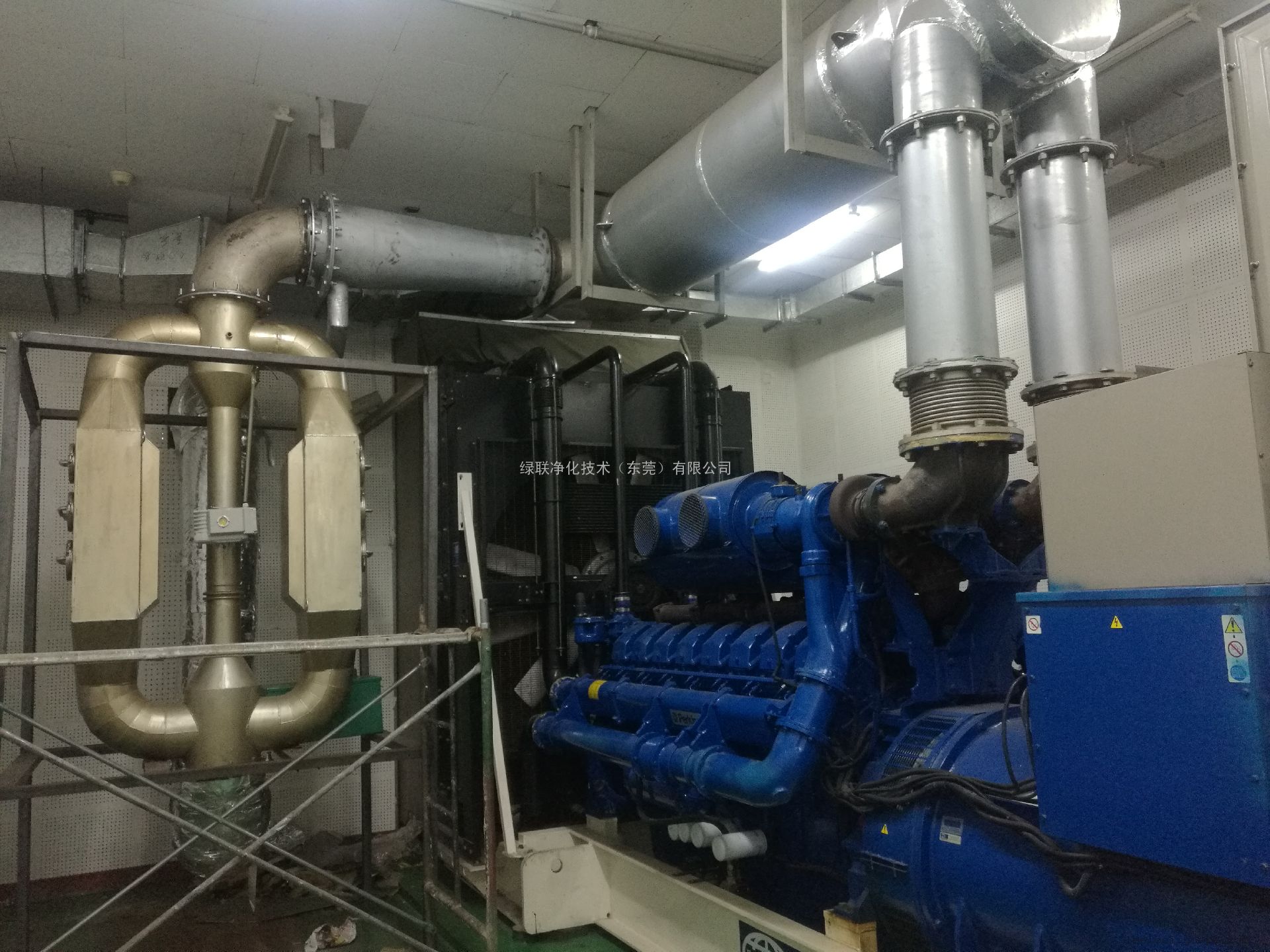 ▲本項目機房現場圖片(發動機匹配綠聯干式黑煙凈化器)