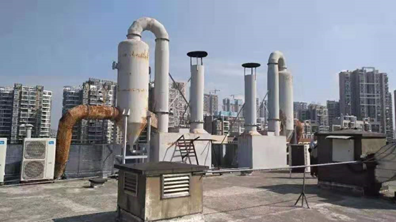 改造前樓頂兩臺旋流塔水噴淋處理設備銹蝕嚴重