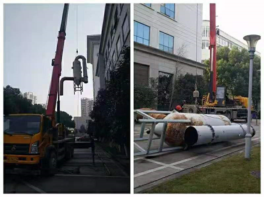 準備起吊原本銹蝕報廢的螺旋塔水噴淋設備